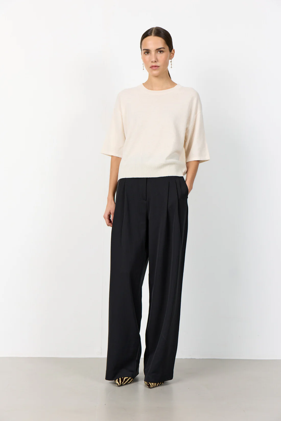 This knitted top is the perfect basic for every wardrobe! With its round neck and short, wide sleeves, it is ideal for endless combinations. Wear it with jeans for a casual look or with trousers for a chic vibe.