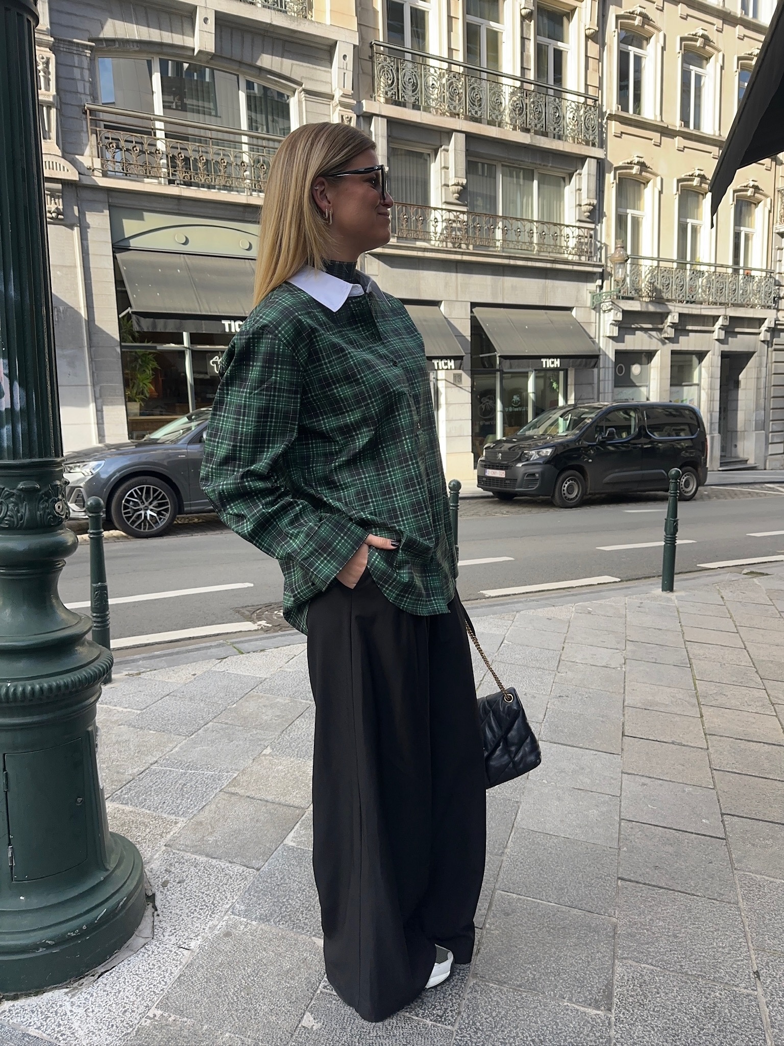 Eline is 178cm tall and is dressed in size L/40