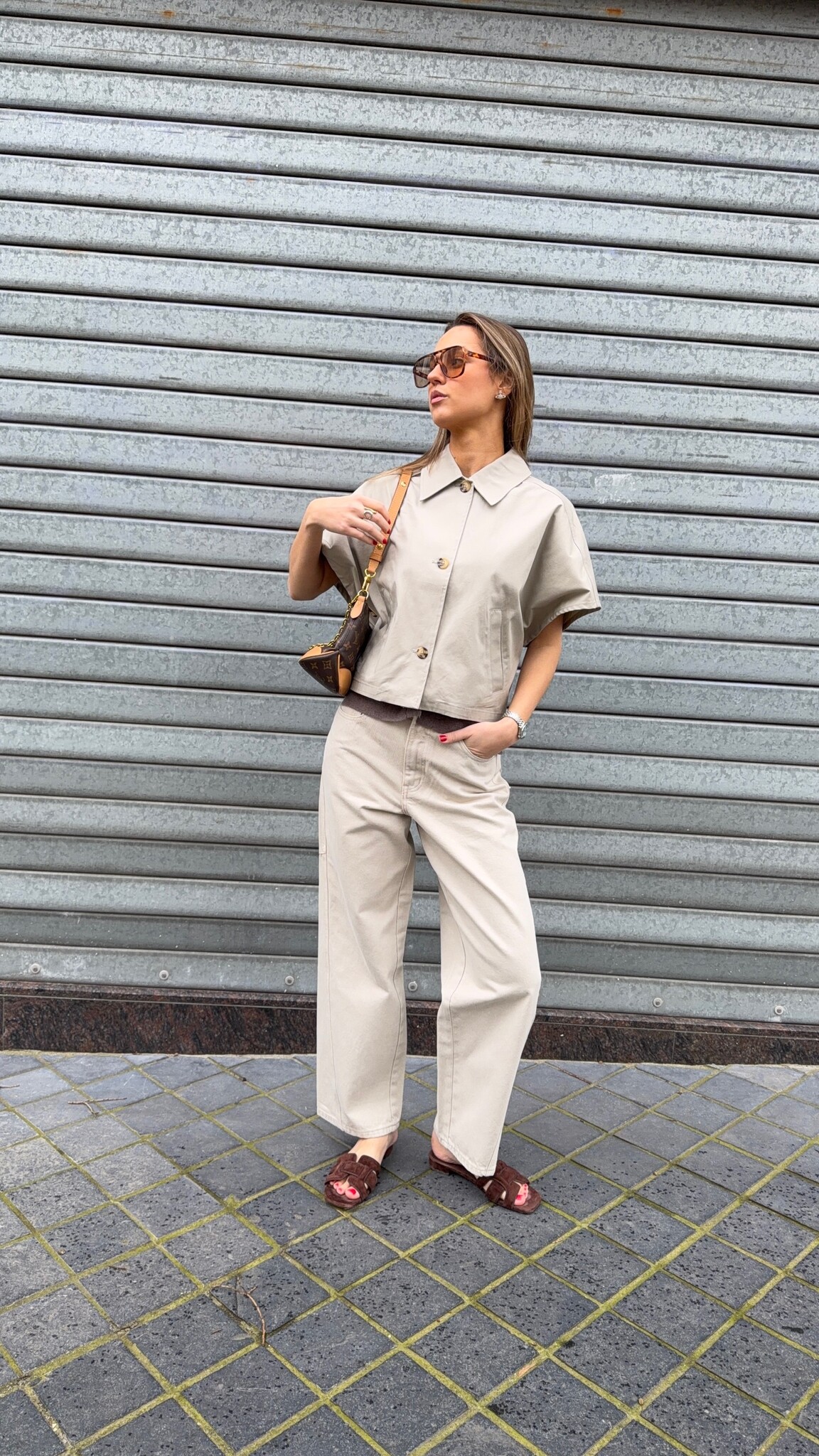 Make a statement with this cropped jacket! This piece features a unique silhouette with short sleeves and a classic collar. Wear it closed as a top or open as a jacket over a basic piece. An essential layering staple that instantly upgrades any outfit.