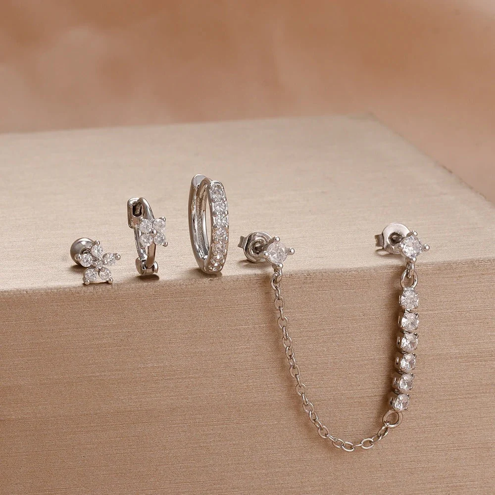 The Pixie Set is a playful earring set designed to bring movement and a joyful vibe to your look. With charming dangling details, these pieces add a whimsical touch that instantly brightens any outfit. Sold as a set of 4 pieces.