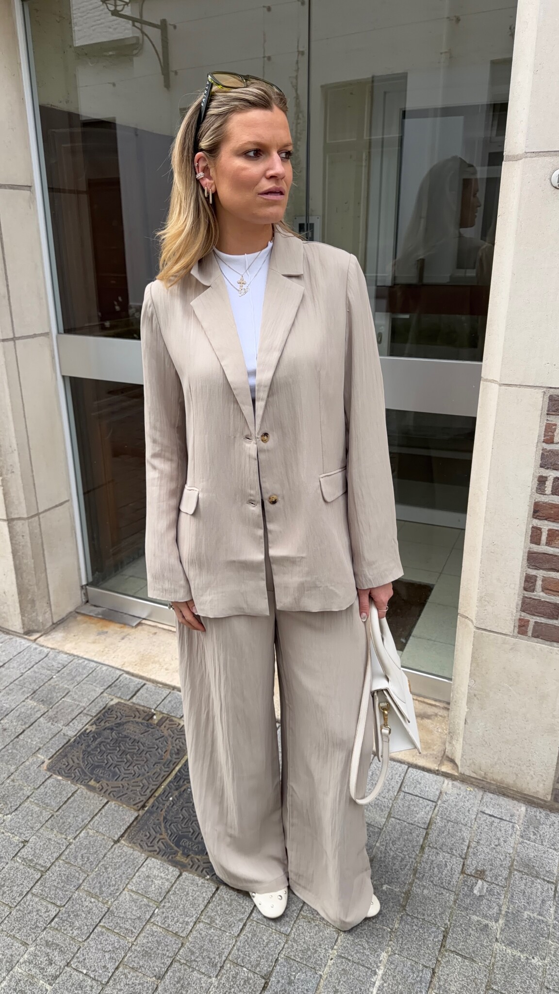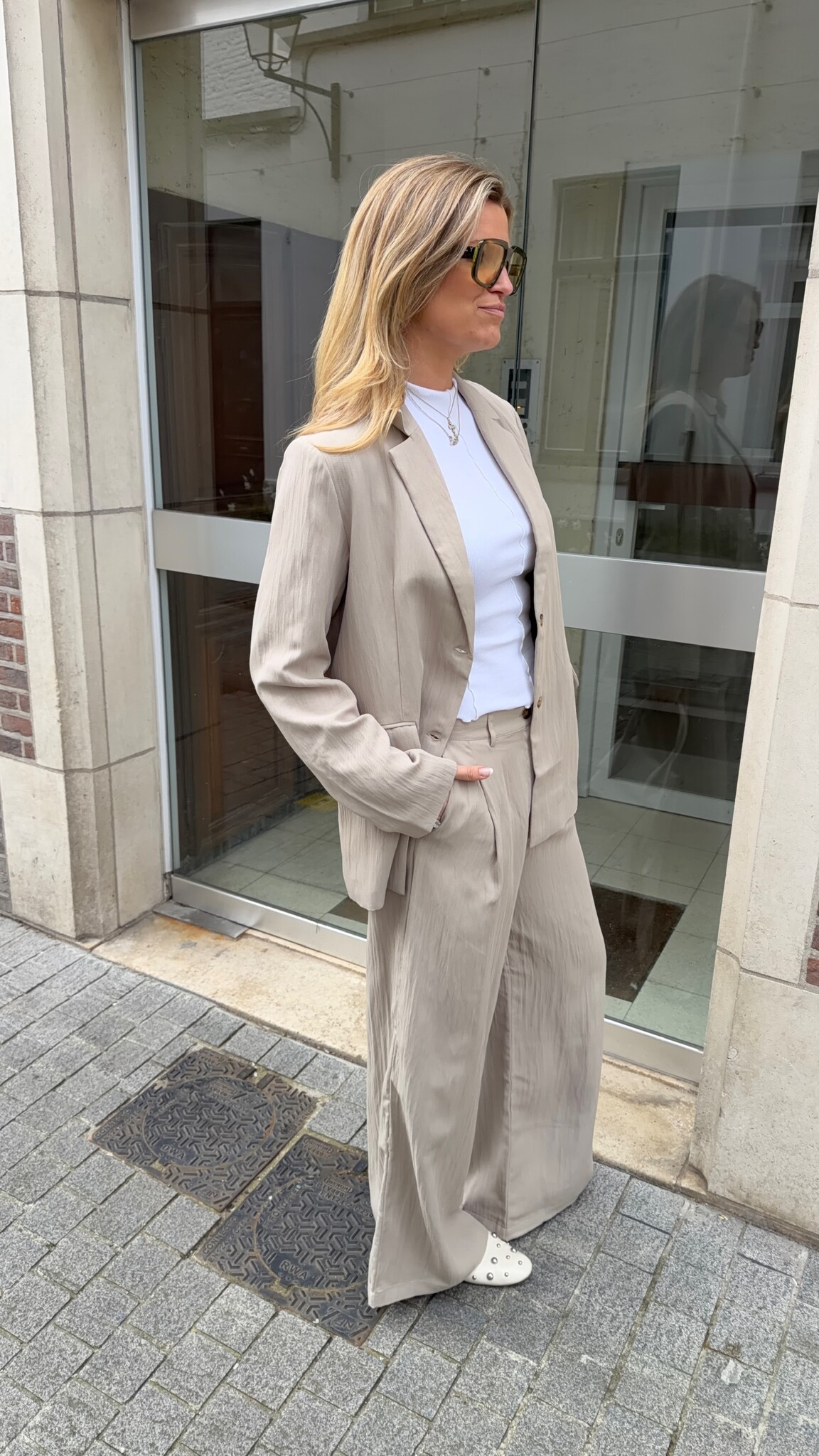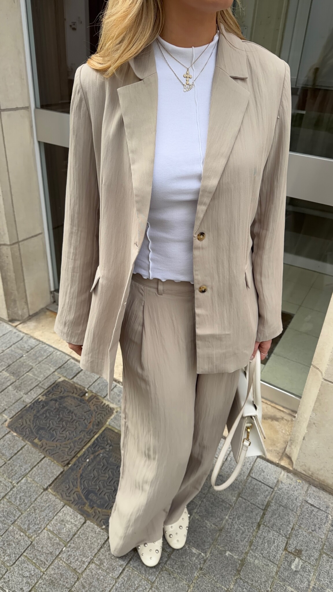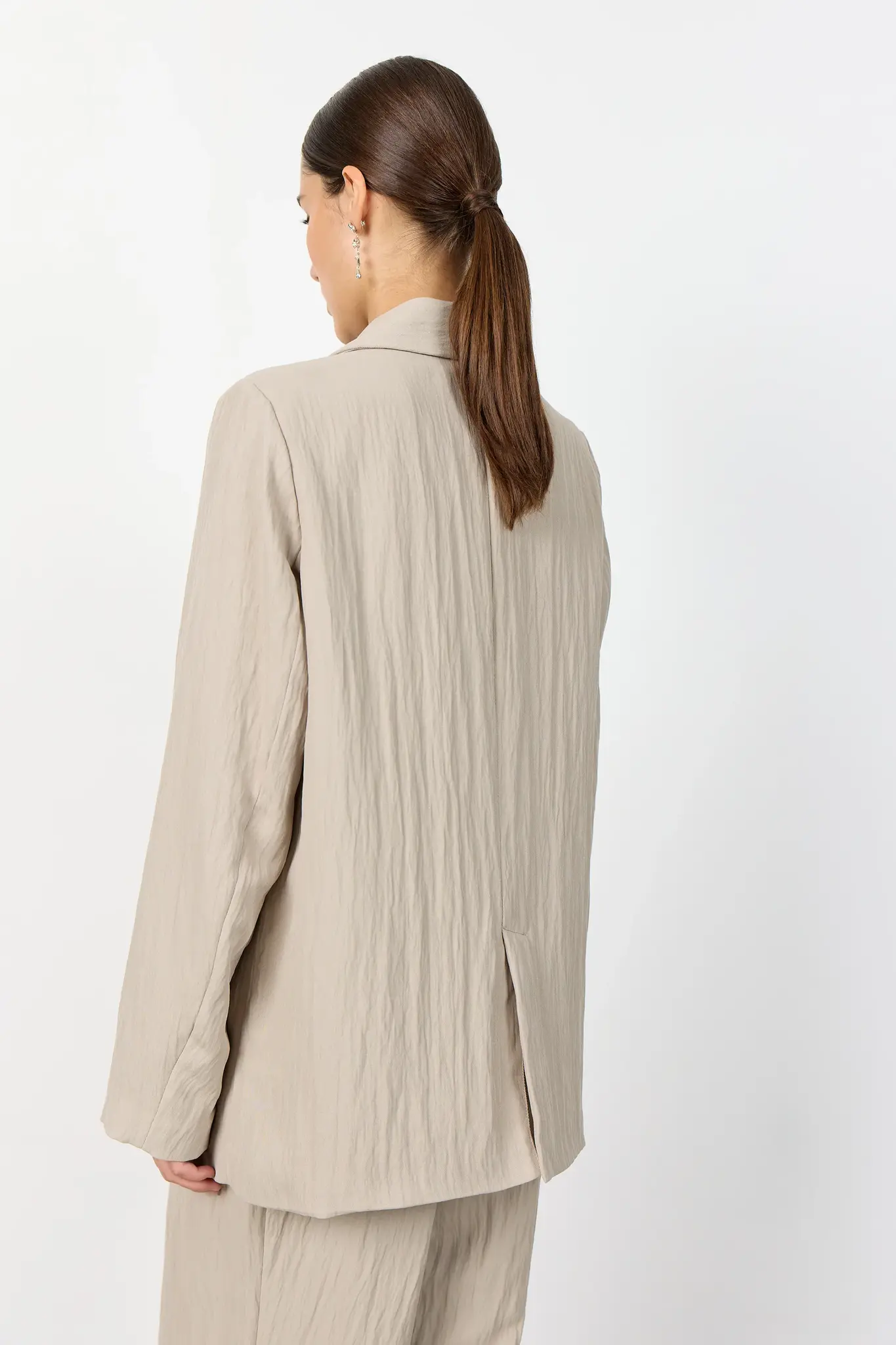 This blazer features an airy fabric with a subtle texture, giving the item a luxurious look. Finished with a classic collar and button closure for a timeless finish. Pair with the matching trousers for the ultimate co-ord vibe.