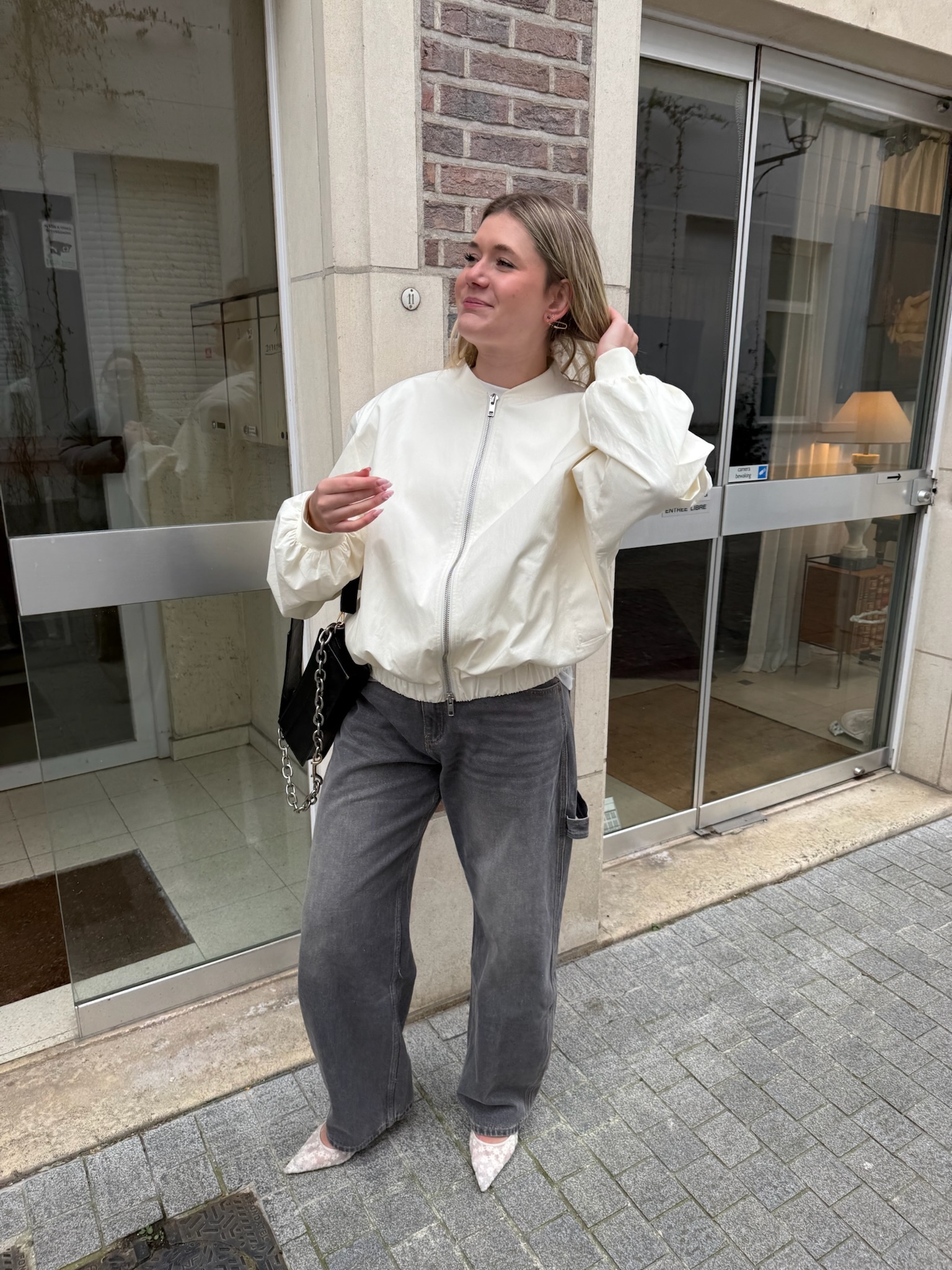 This bomber has an oversized fit