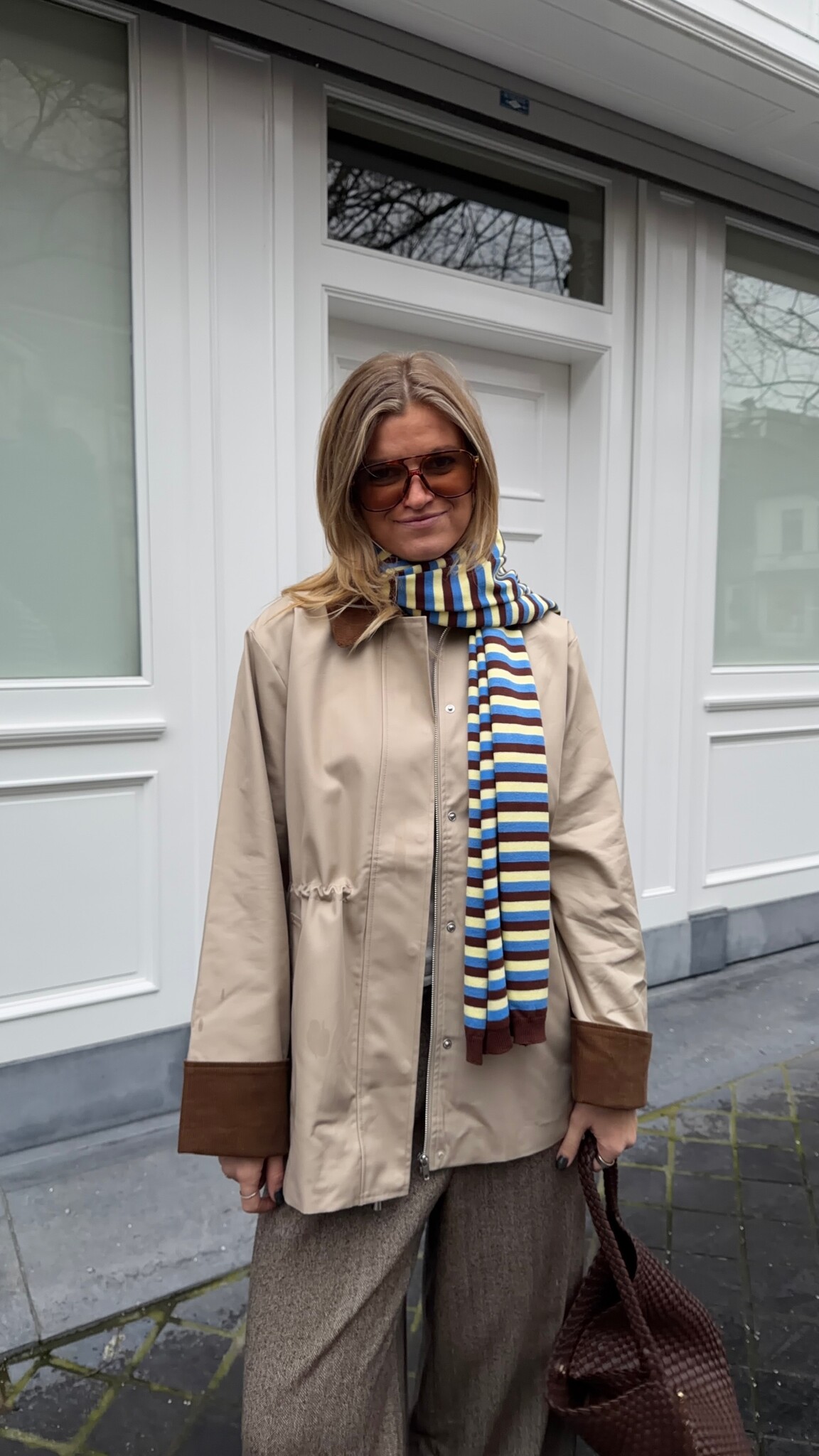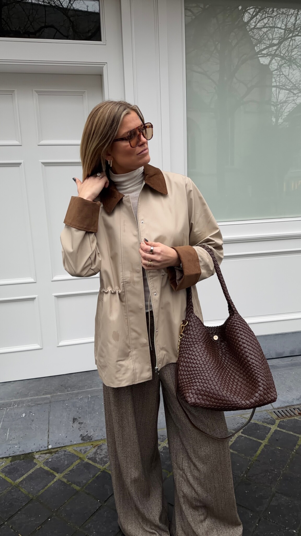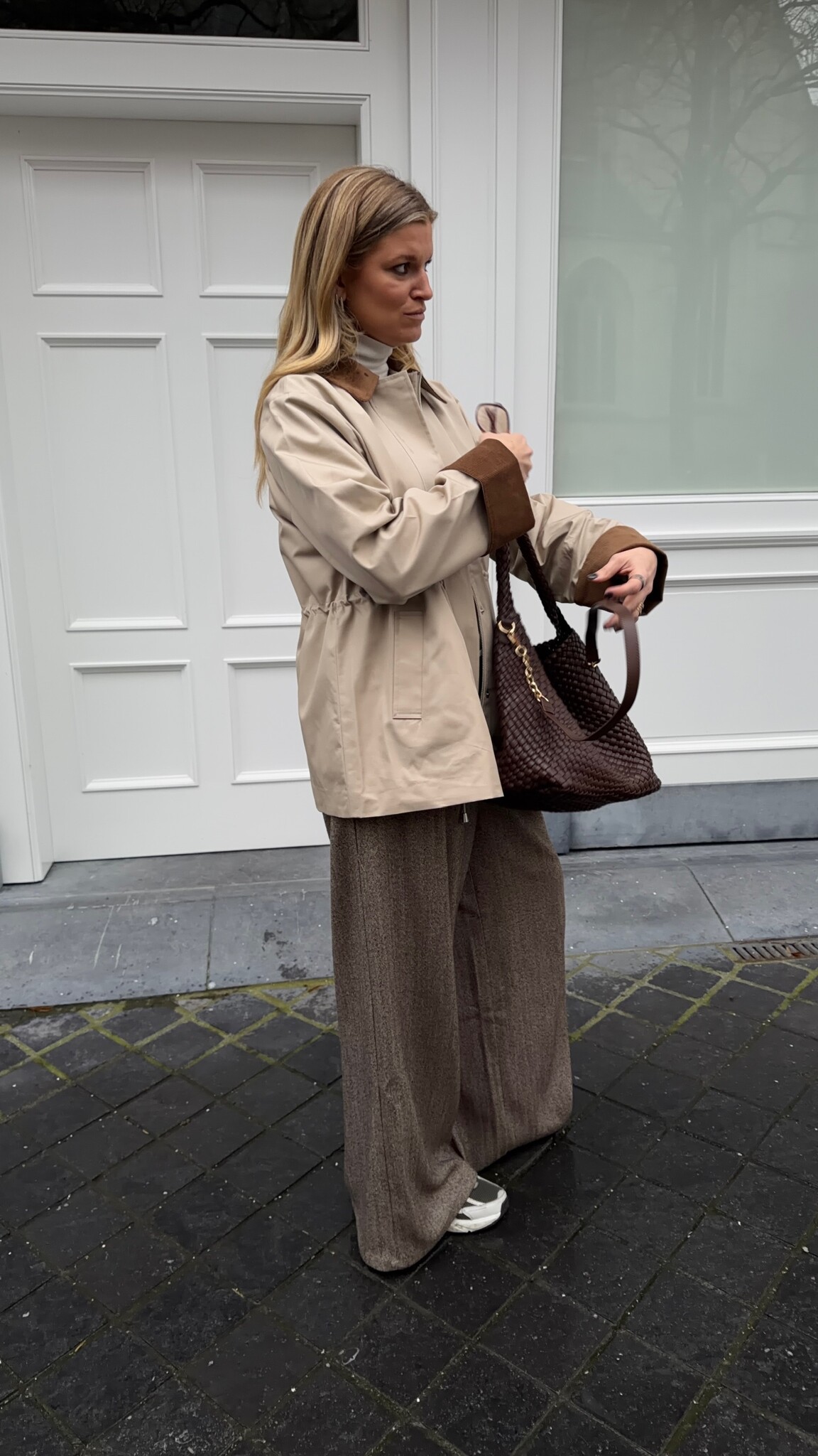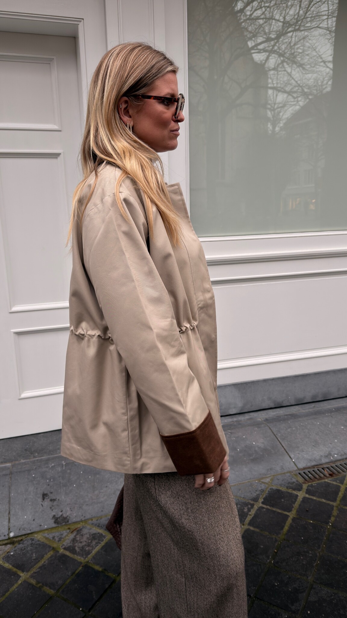 Eline is 178cm tall and is dressed in size L/40