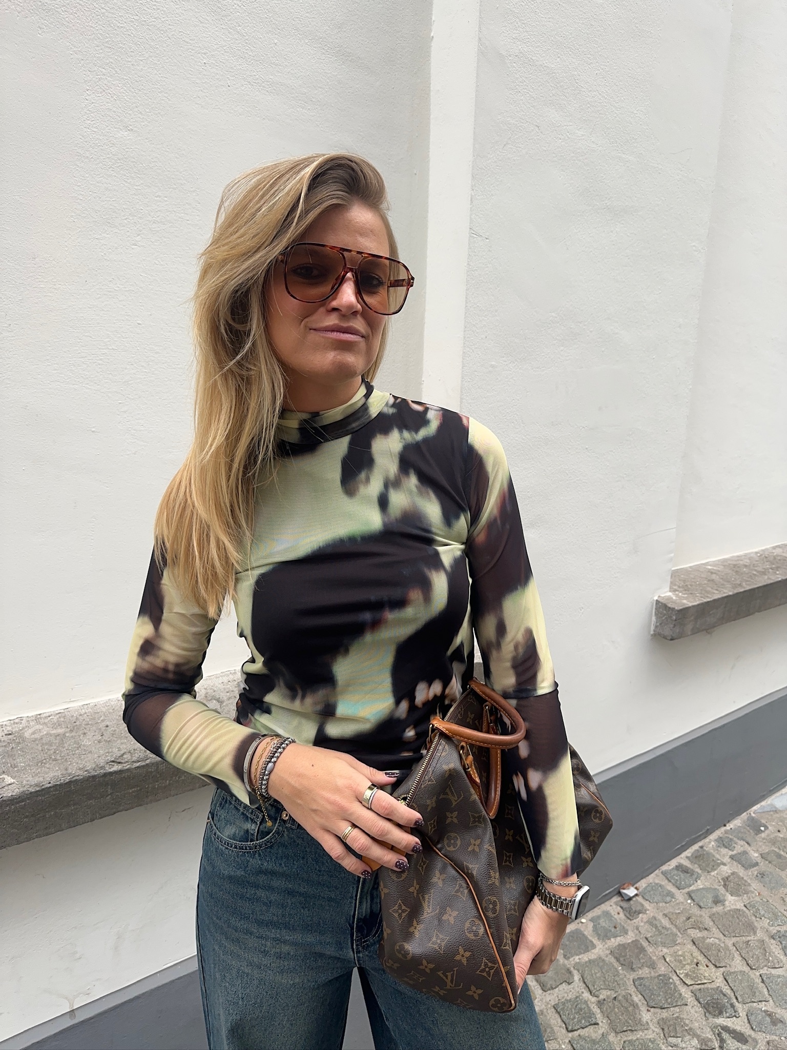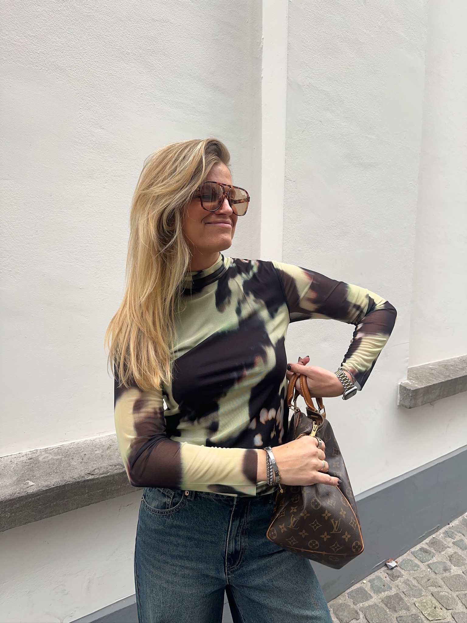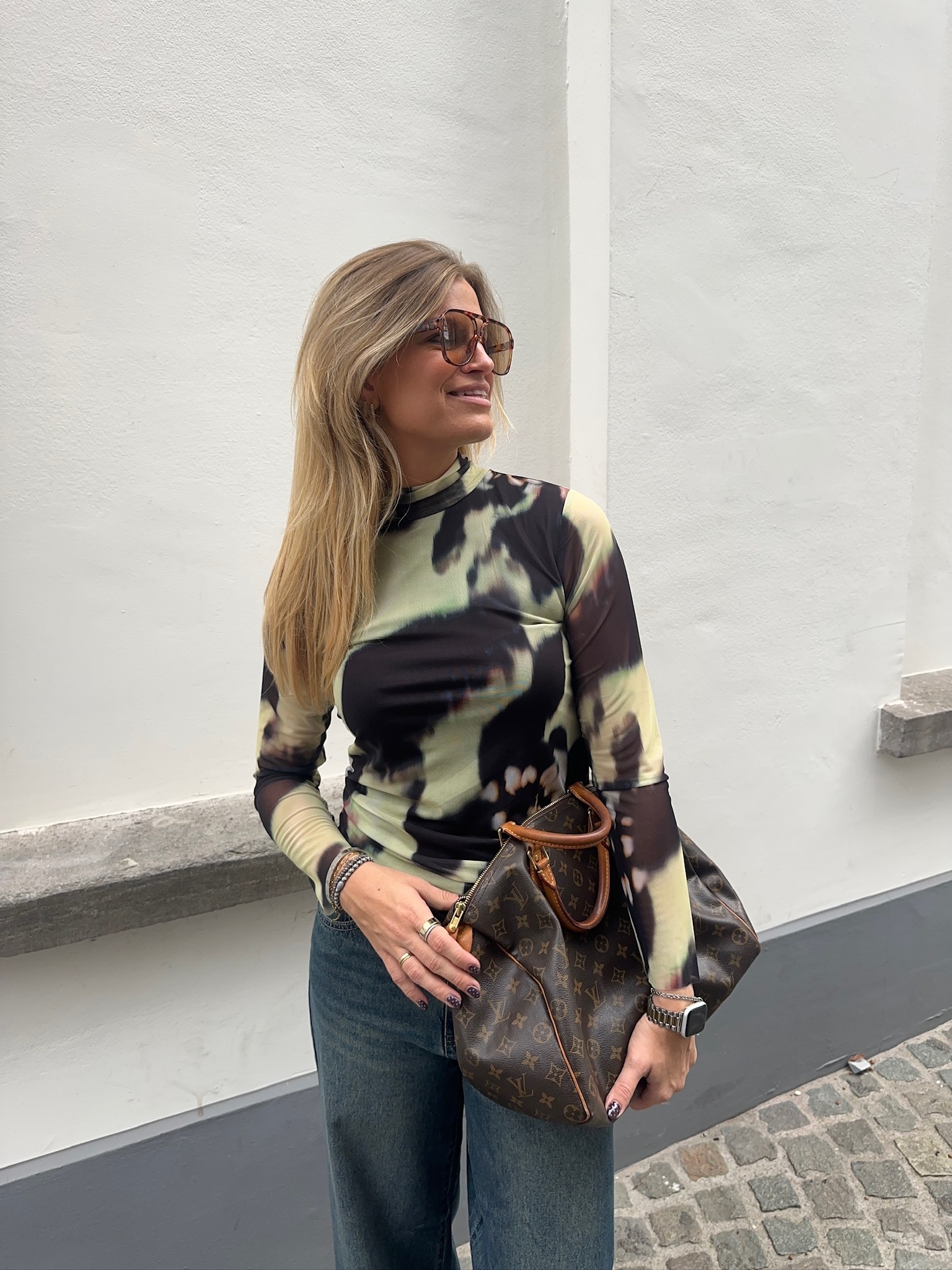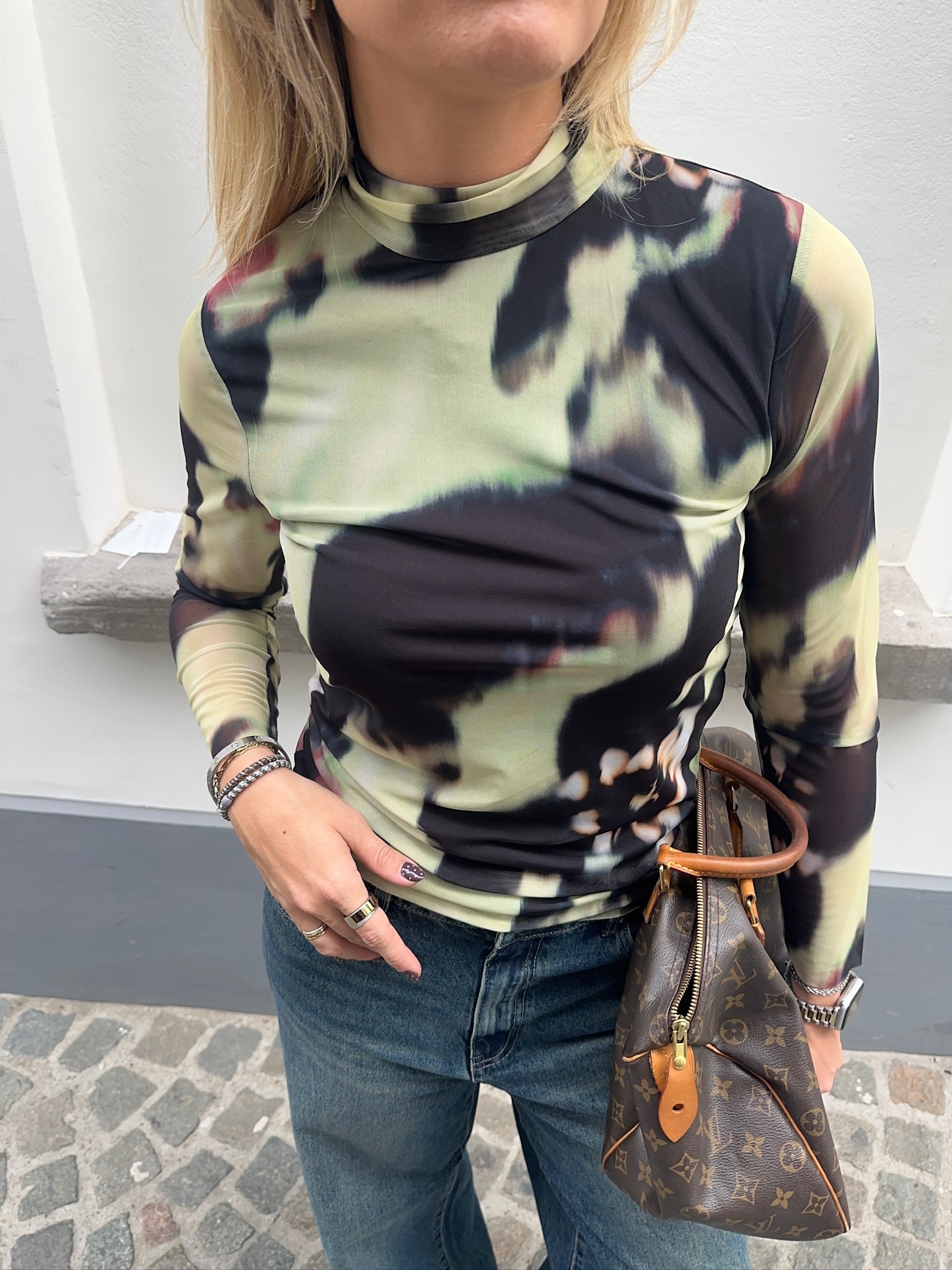 YASLOMI HIGH NECK LS TOP NEW DARK OLIVE/MISA PRINT