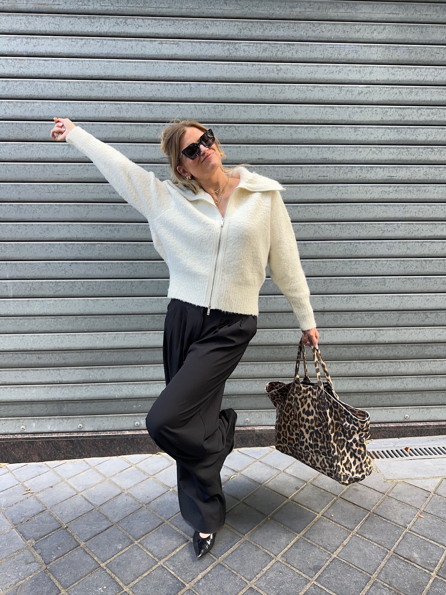Eline is 178cm groot en draagt maat 38/M