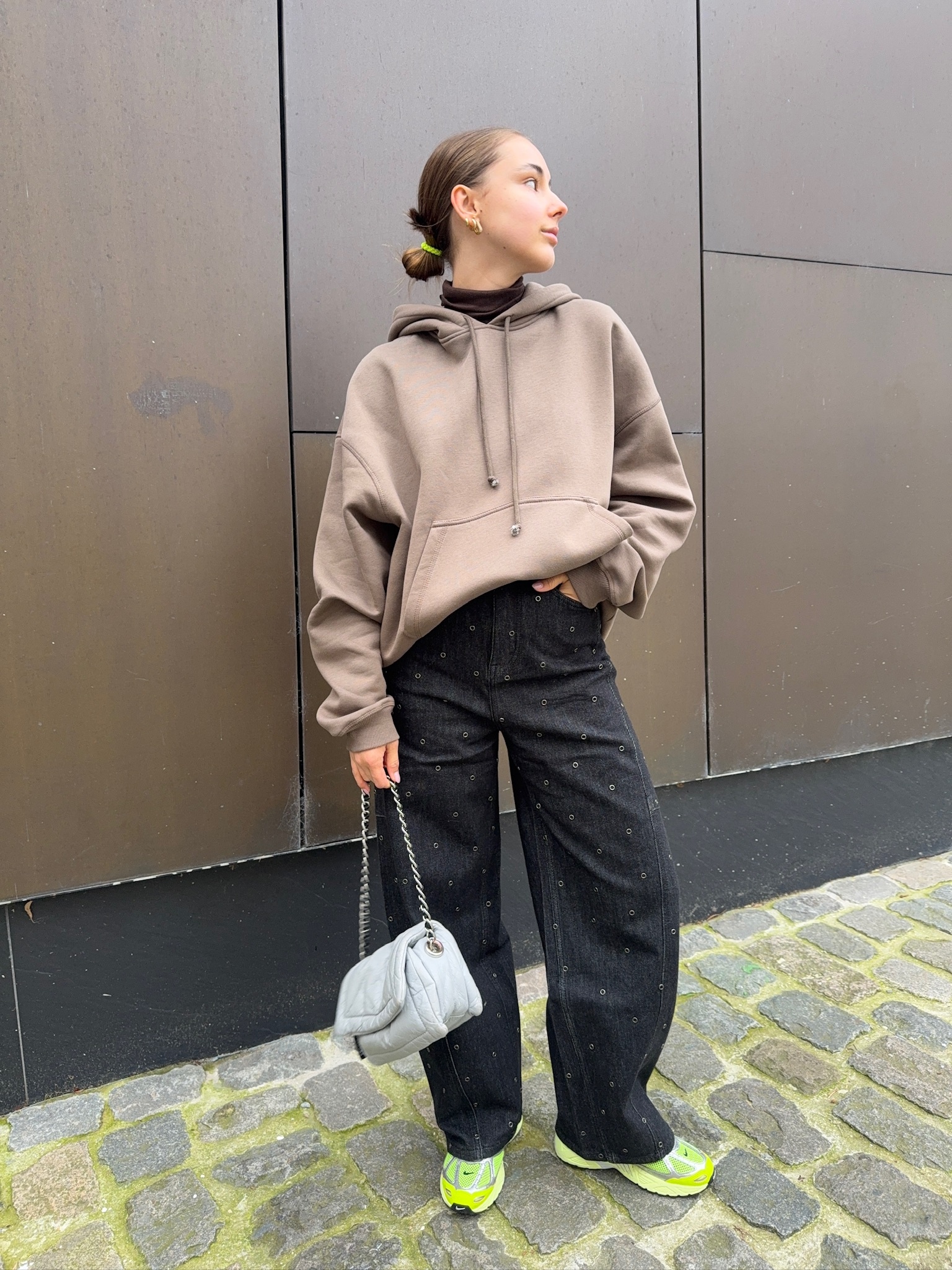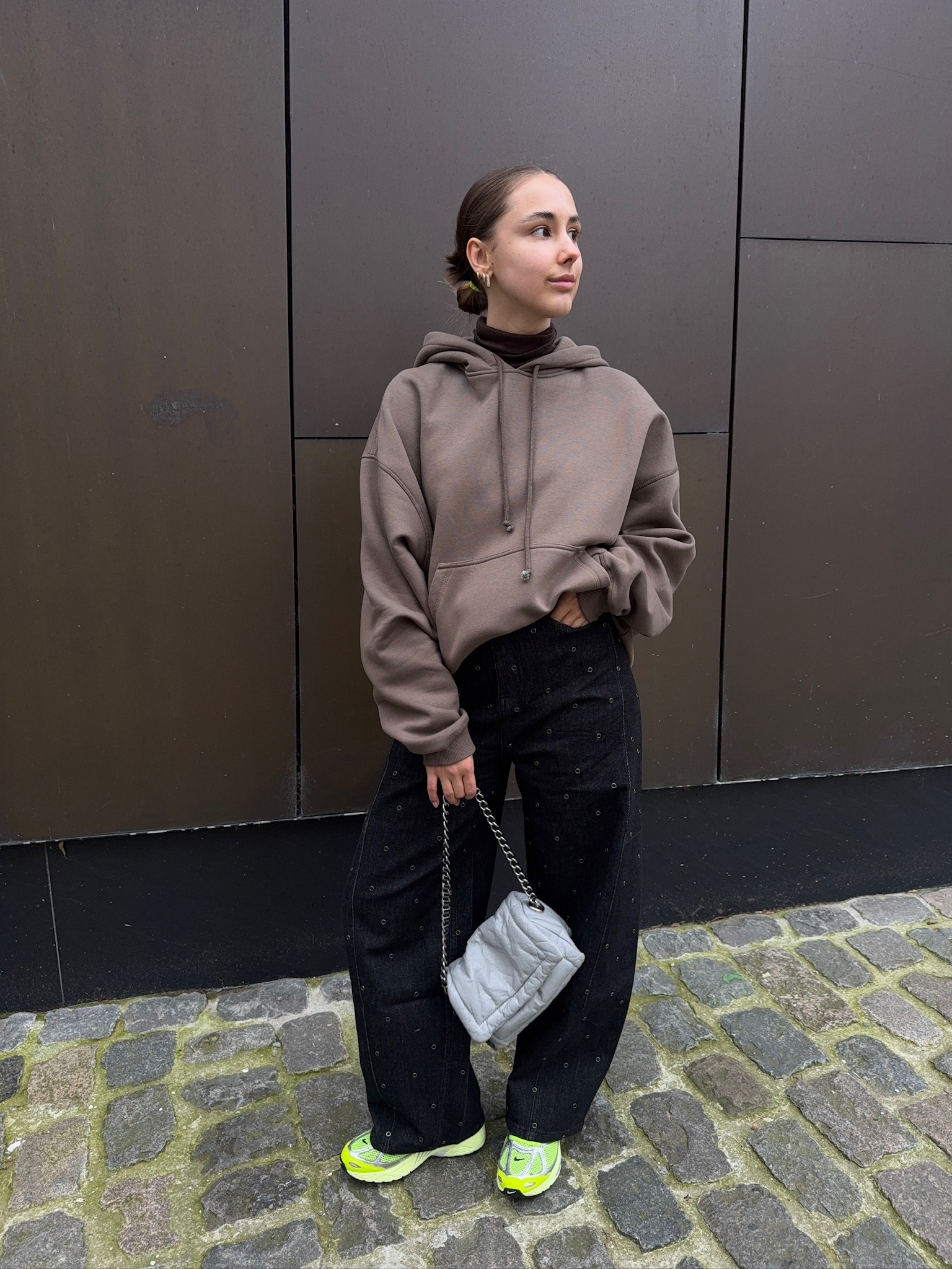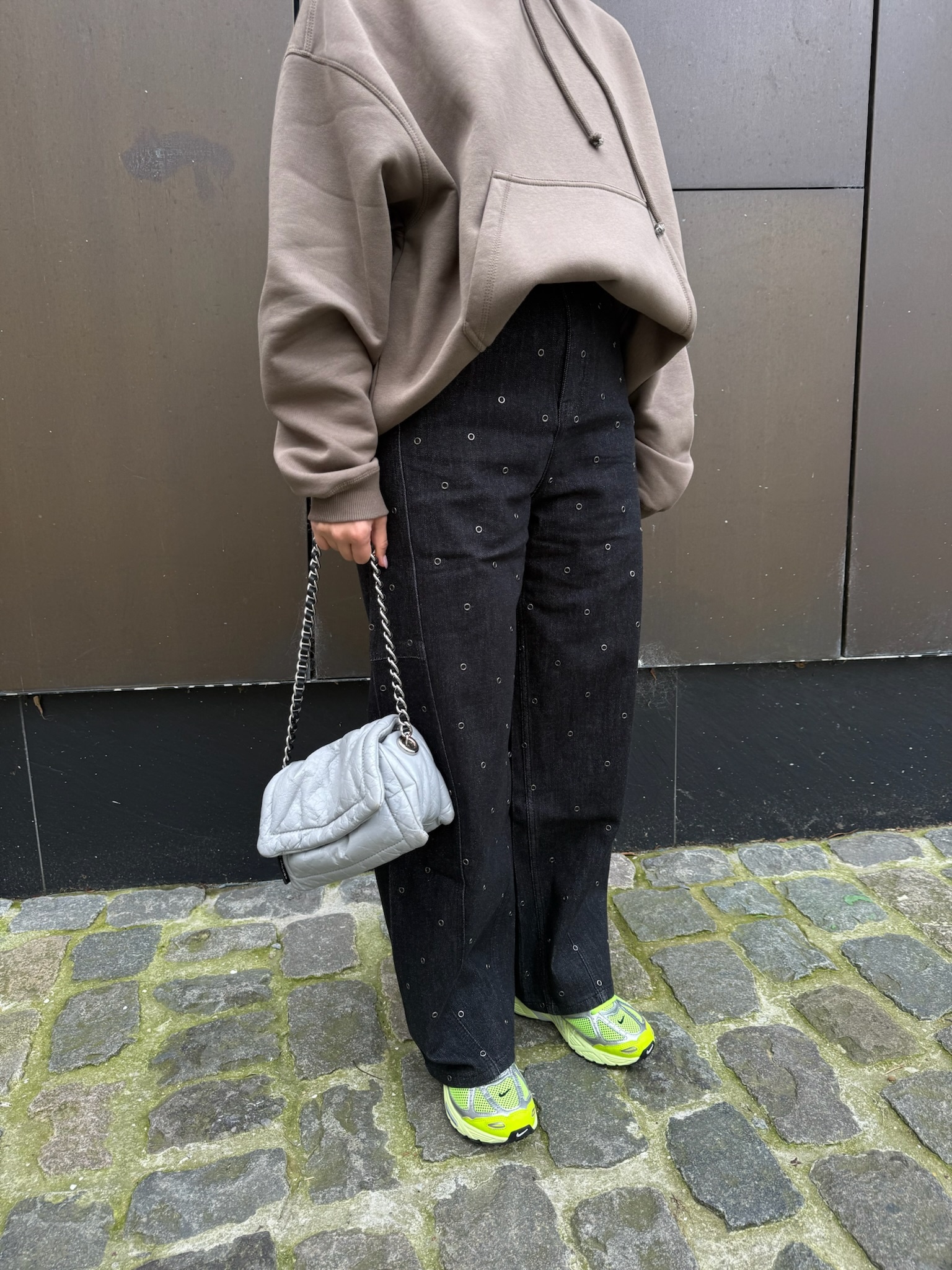 Deze grijze balloon jeans krijgt een extra coole touch dankzij de leuke studs op de voorkant. De combinatie van de speelse balloon fit en de edgy details maakt het een echte standout piece.