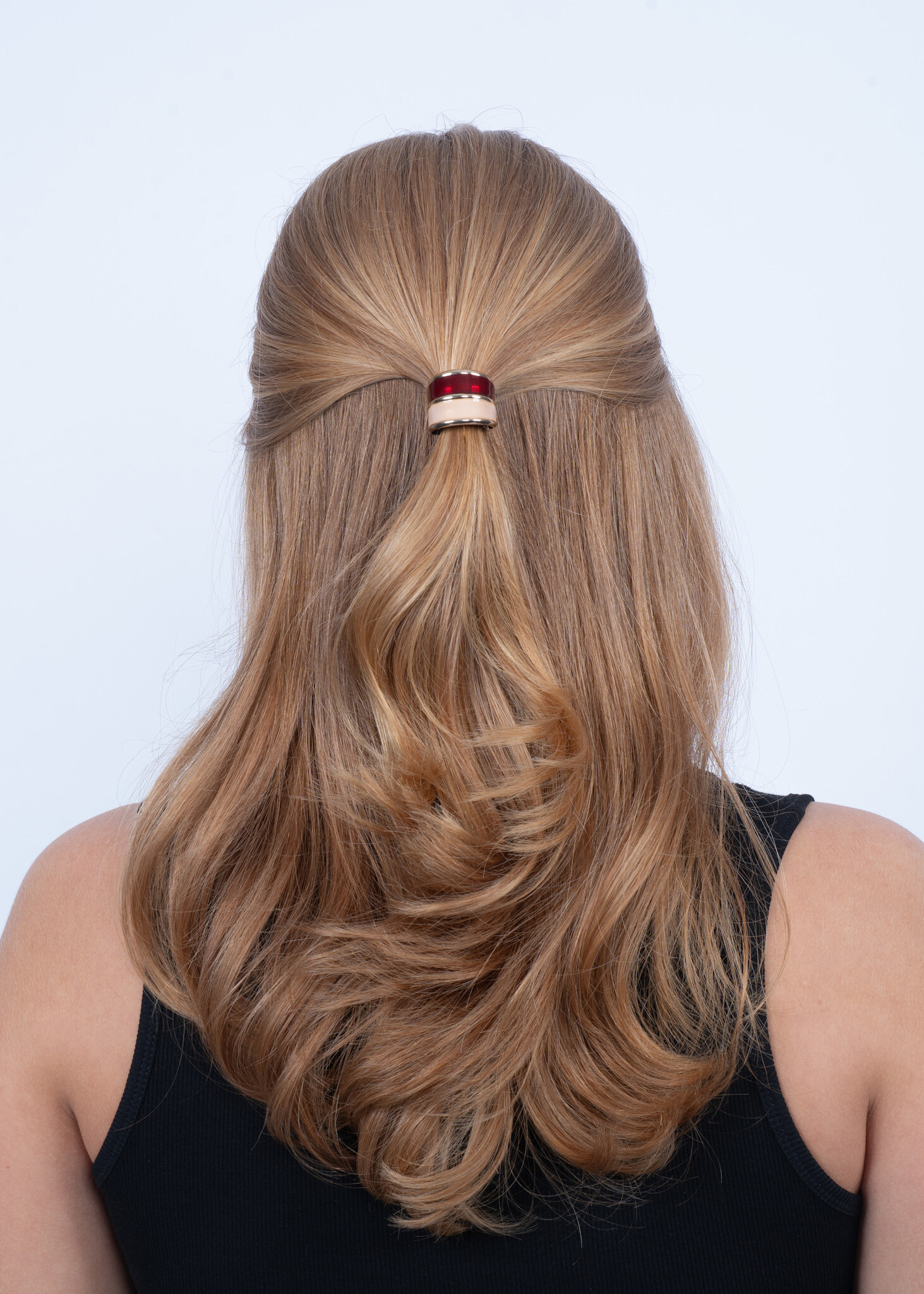 ENAMEL PONYTAIL CUFF STICK GOLD/RED-BEIGE