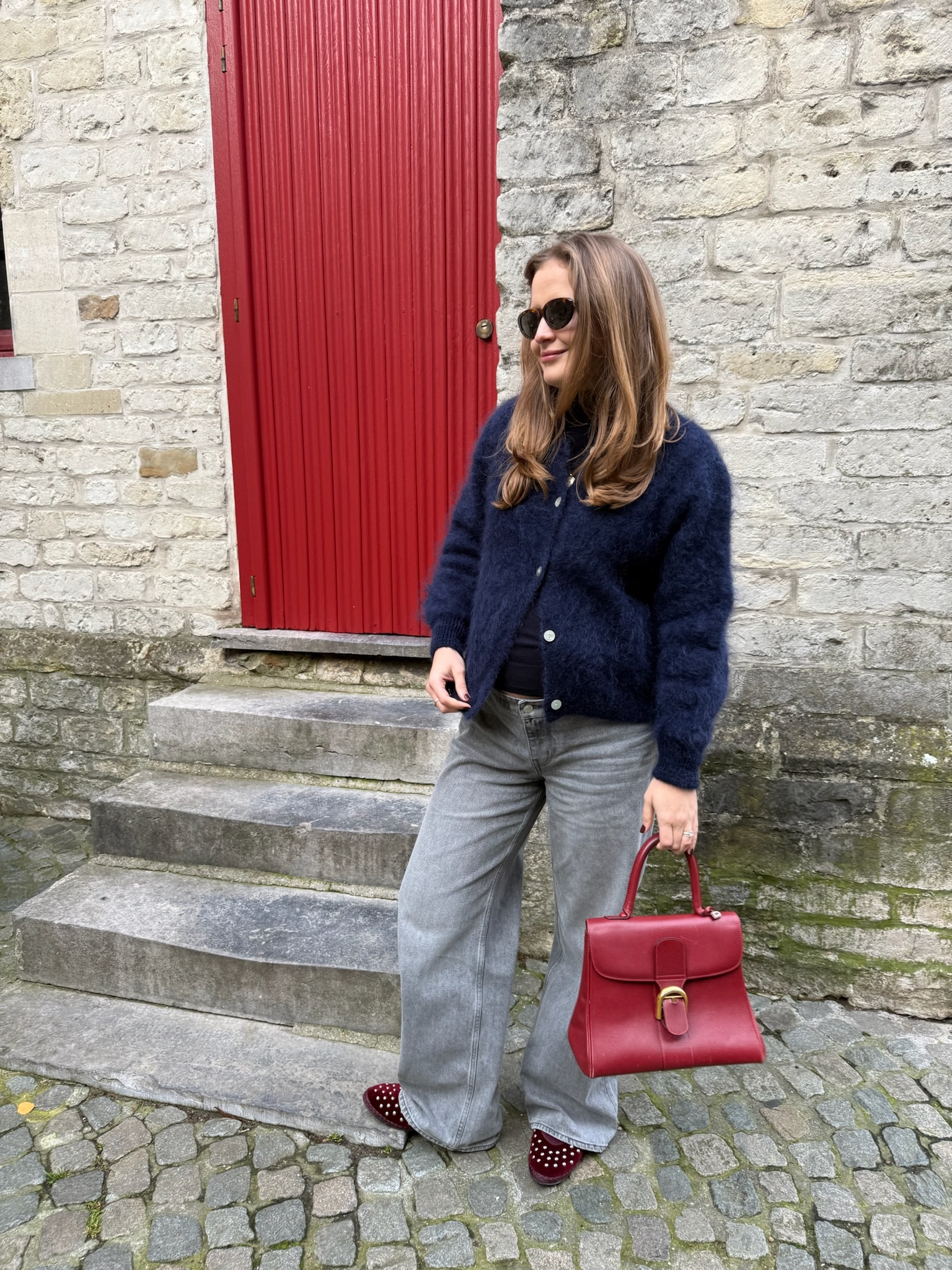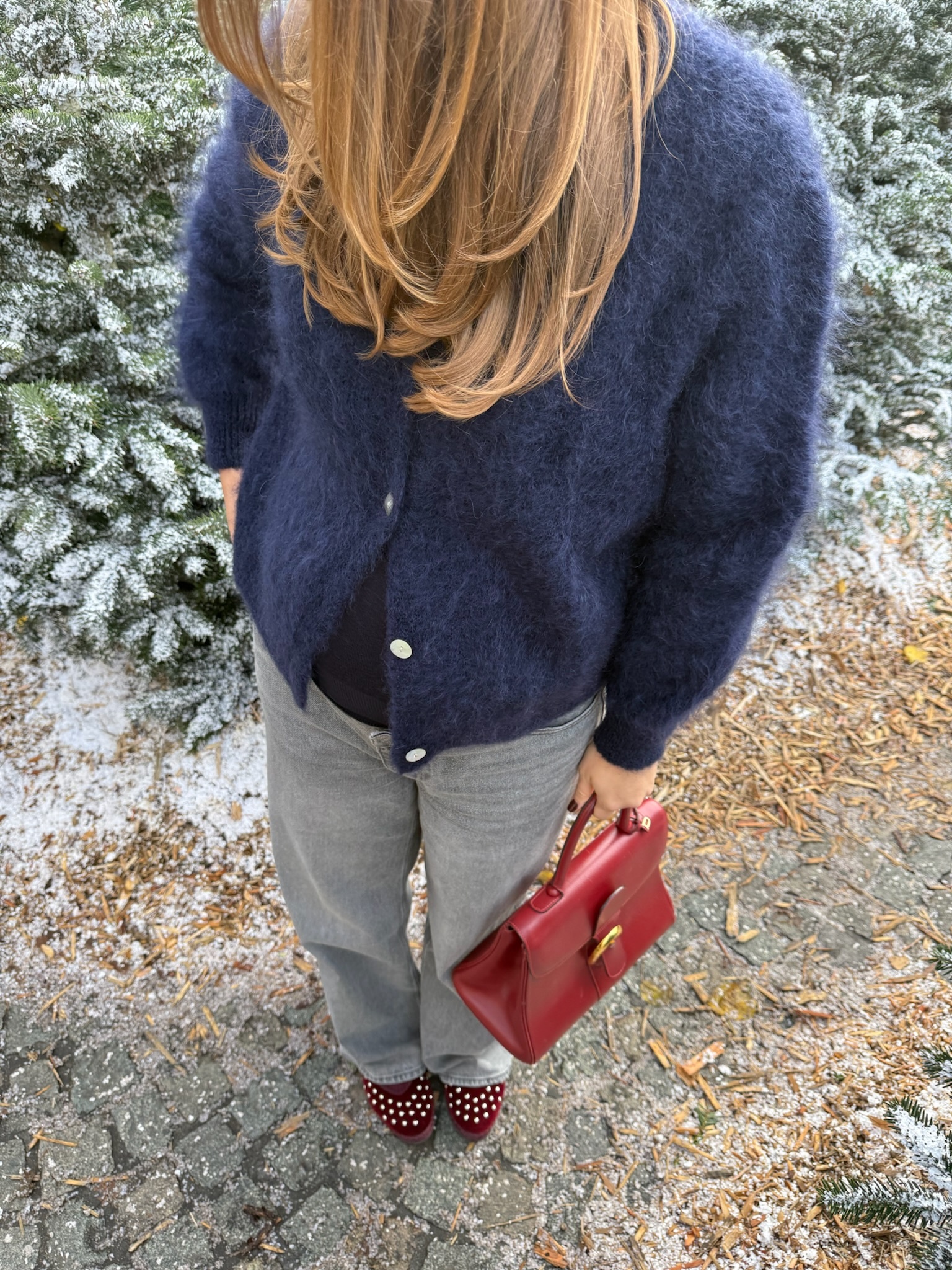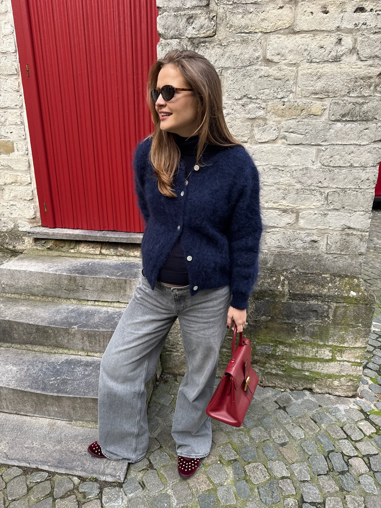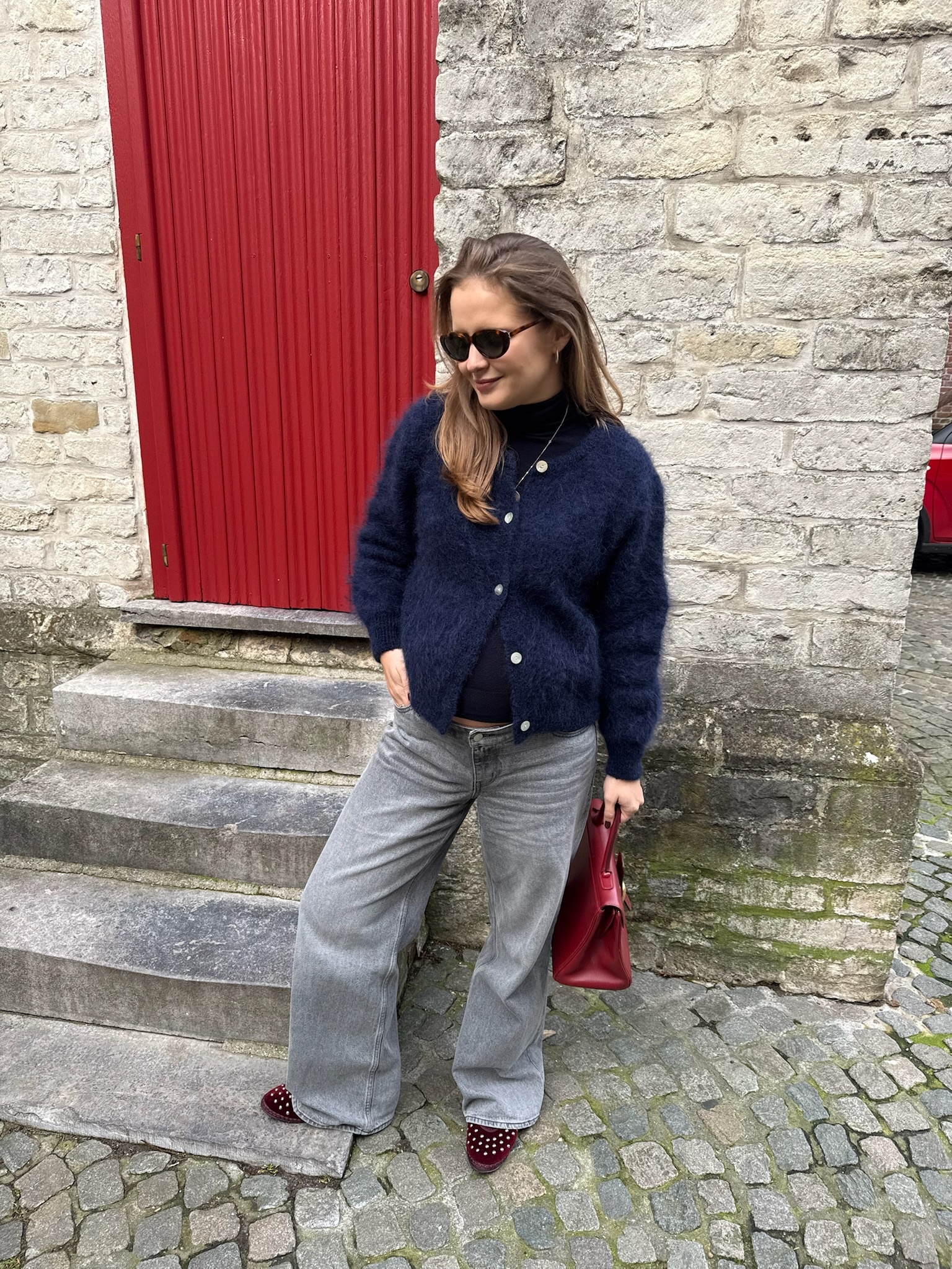 Mohair navy cardigan - een classy knit die onmiddellijk luxe uitstraalt. De zachte mohairmix voelt heerlijk aan en de navy kleur maakt het stuk tijdloos en chic.