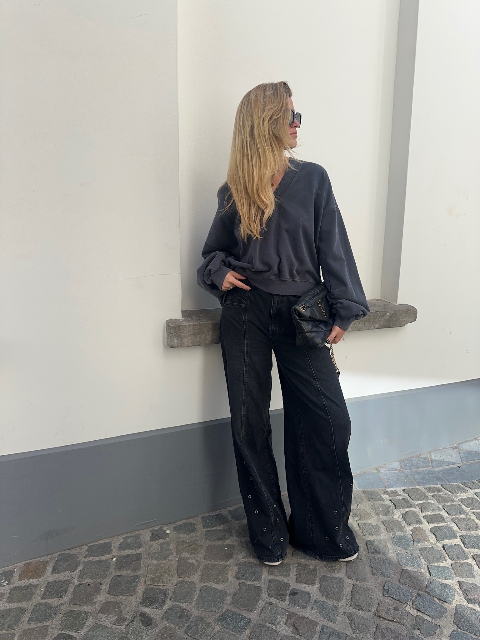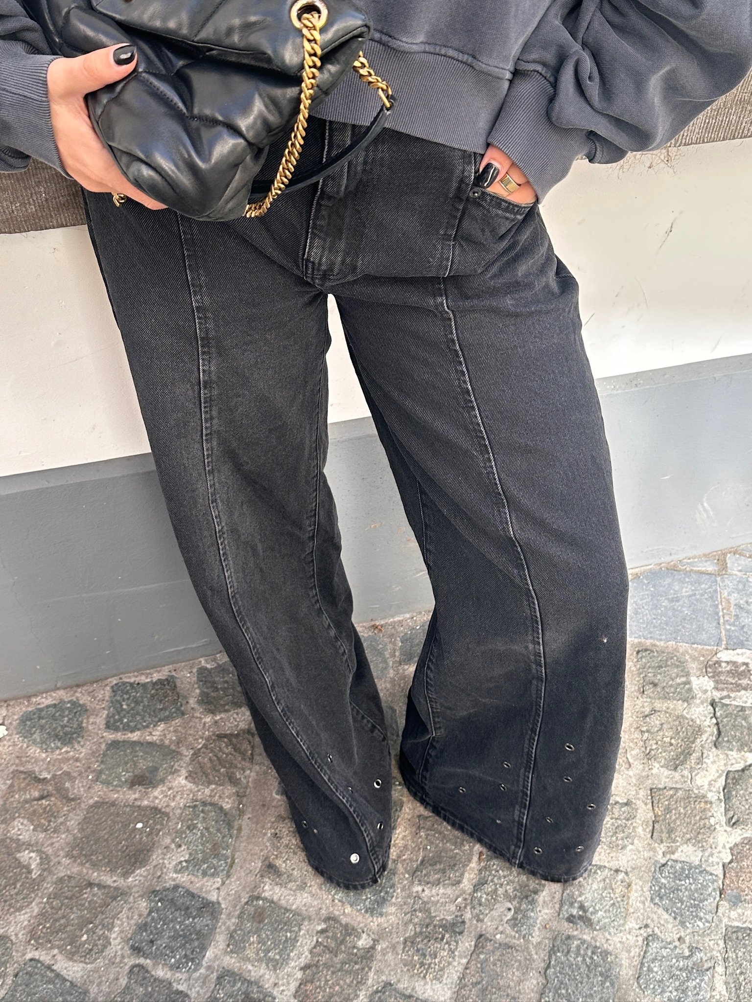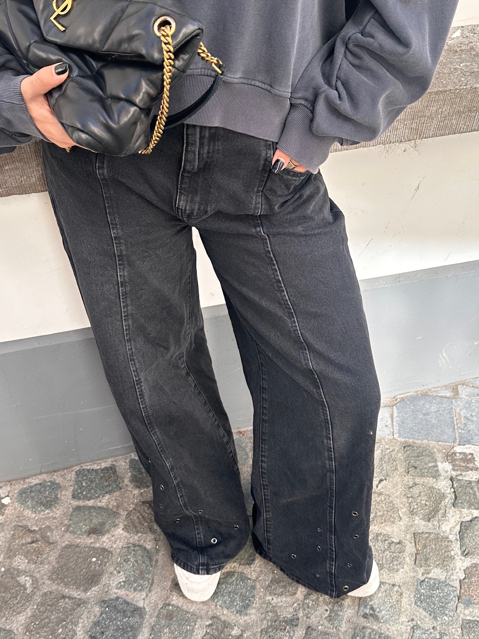SIF EYELET WIDE JEANS BLACK