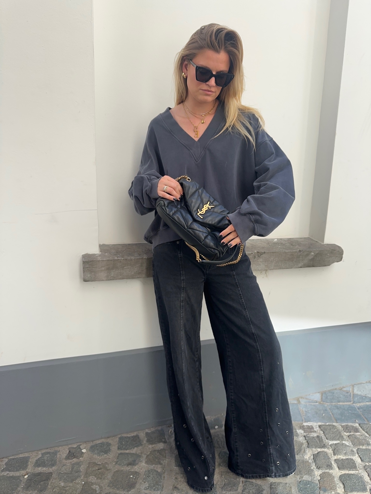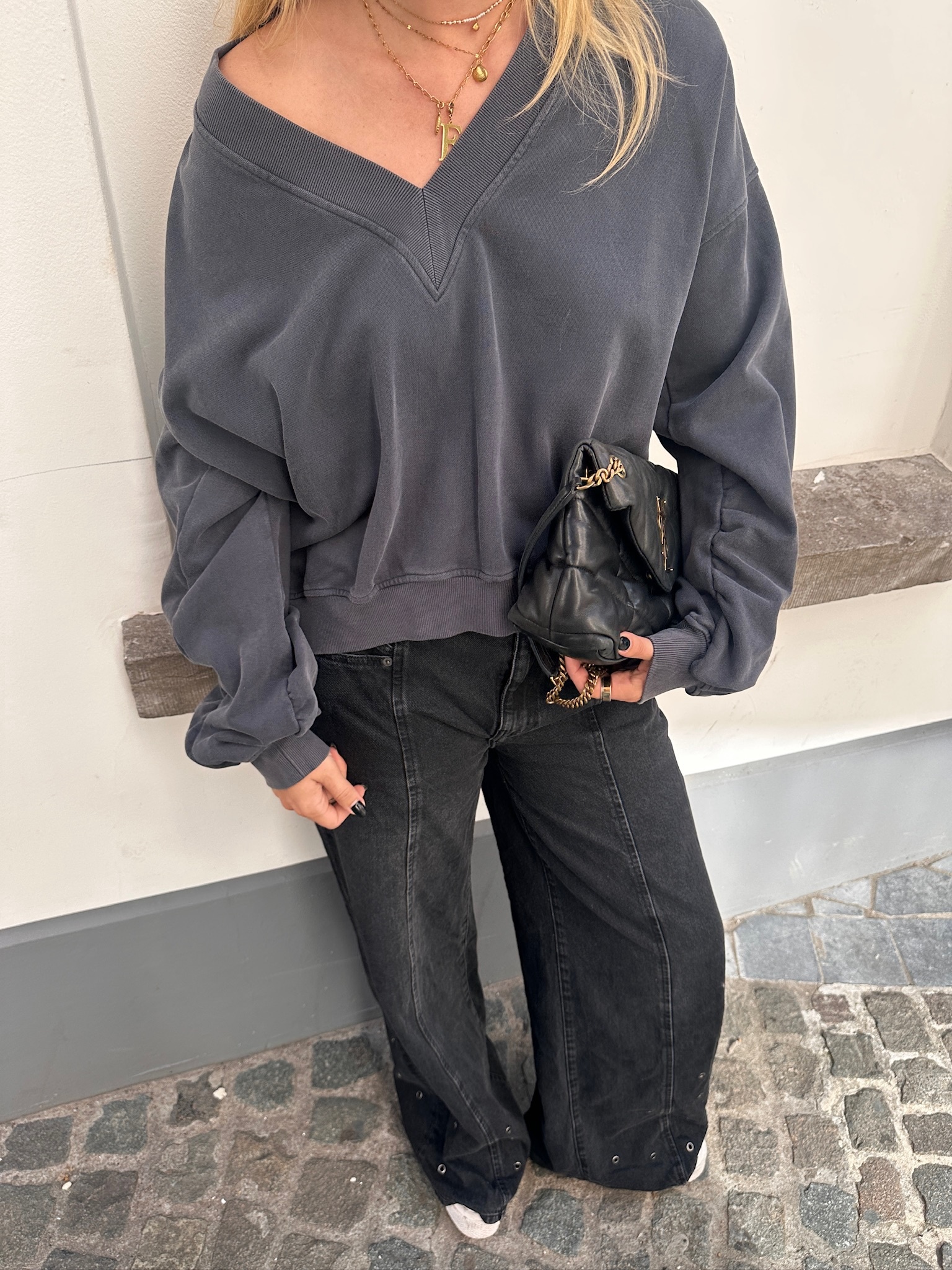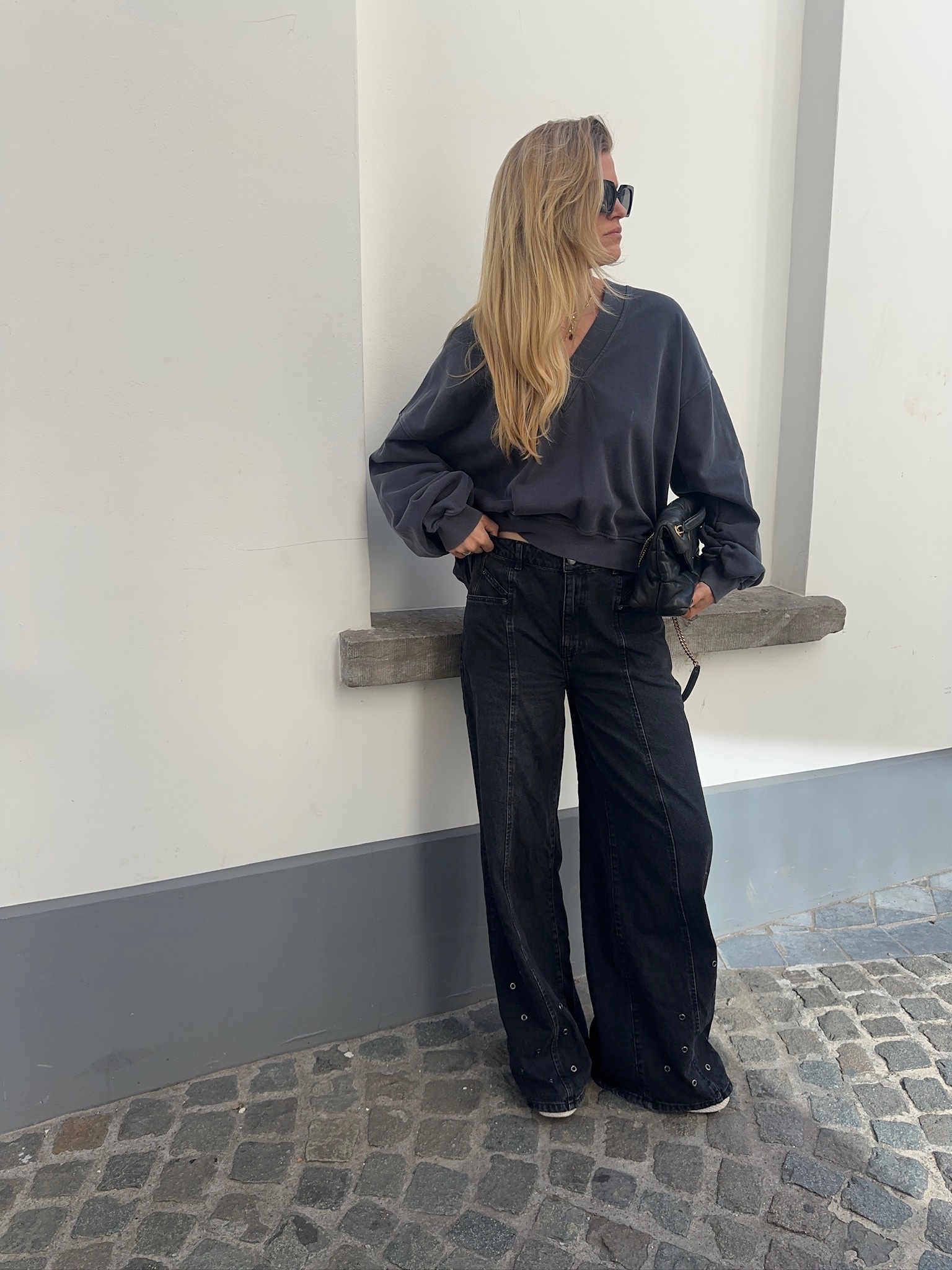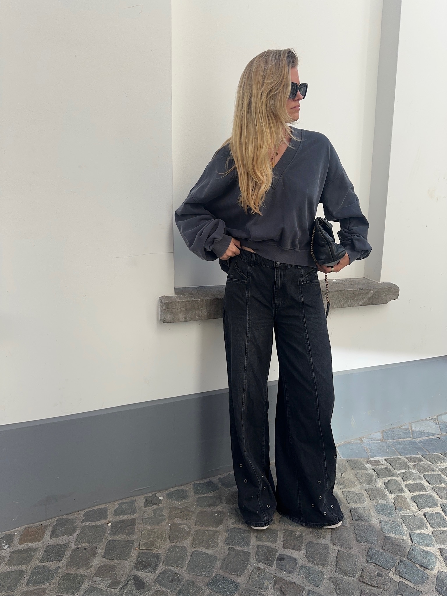 SIF EYELET WIDE JEANS BLACK