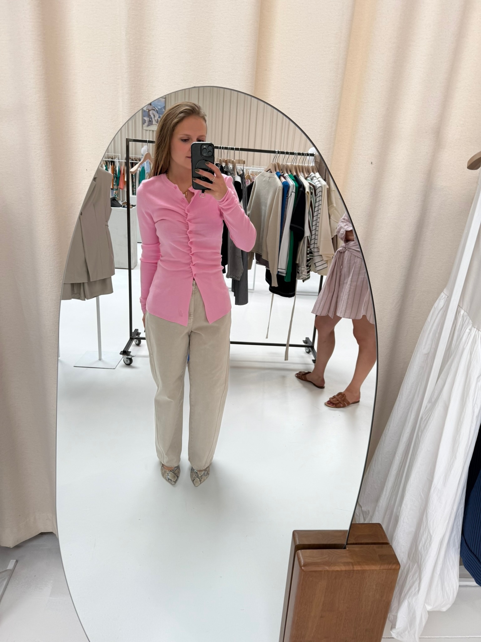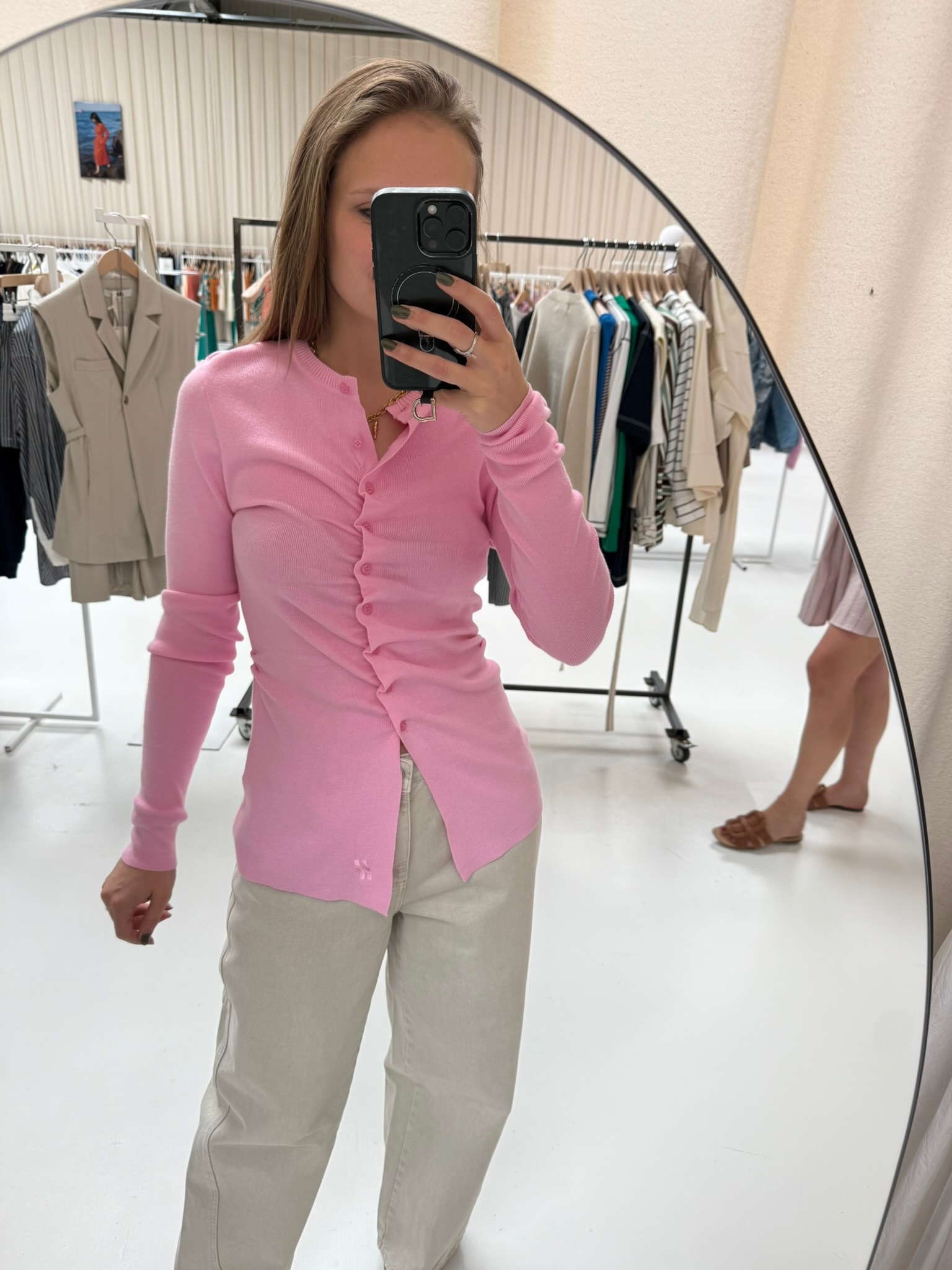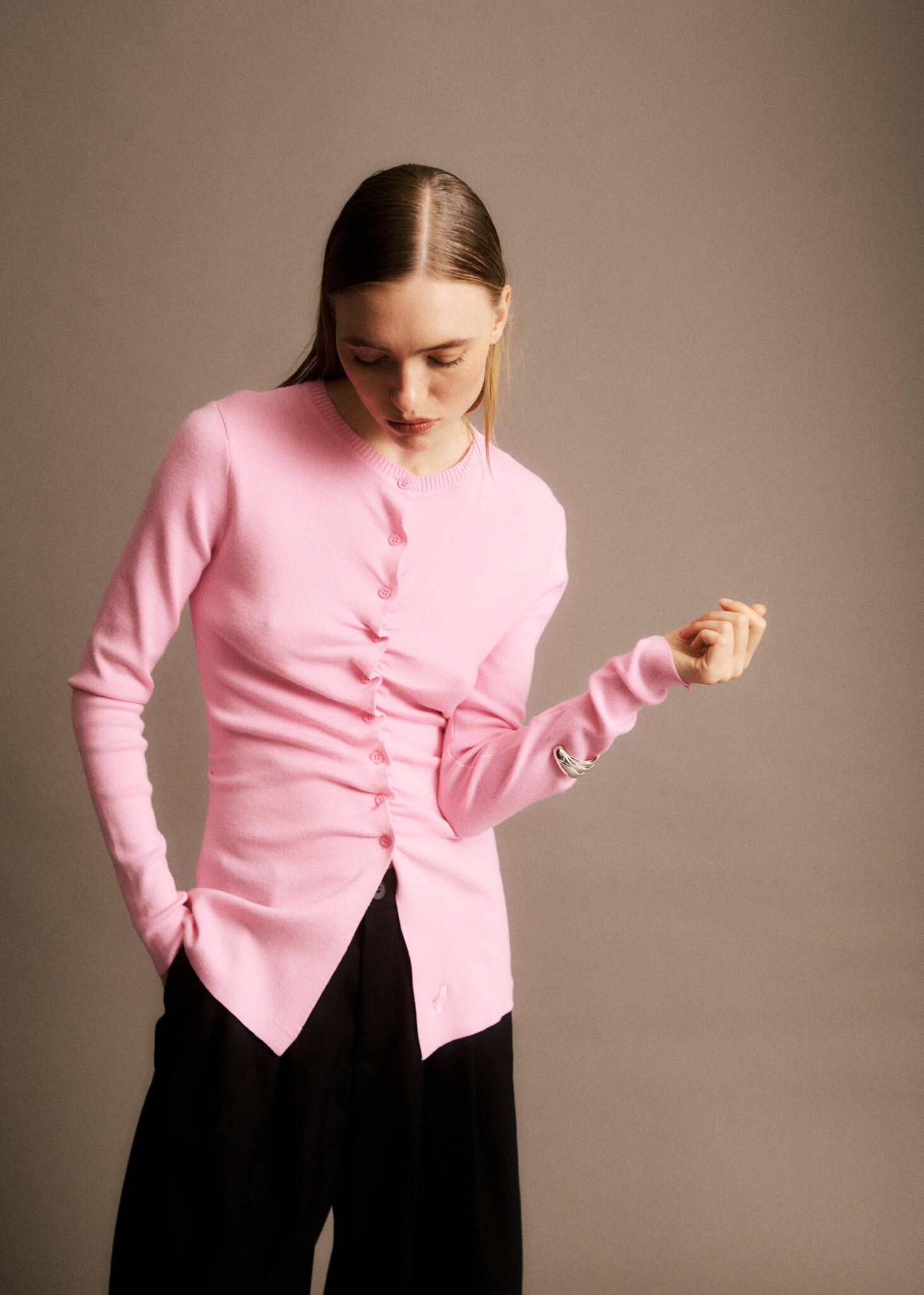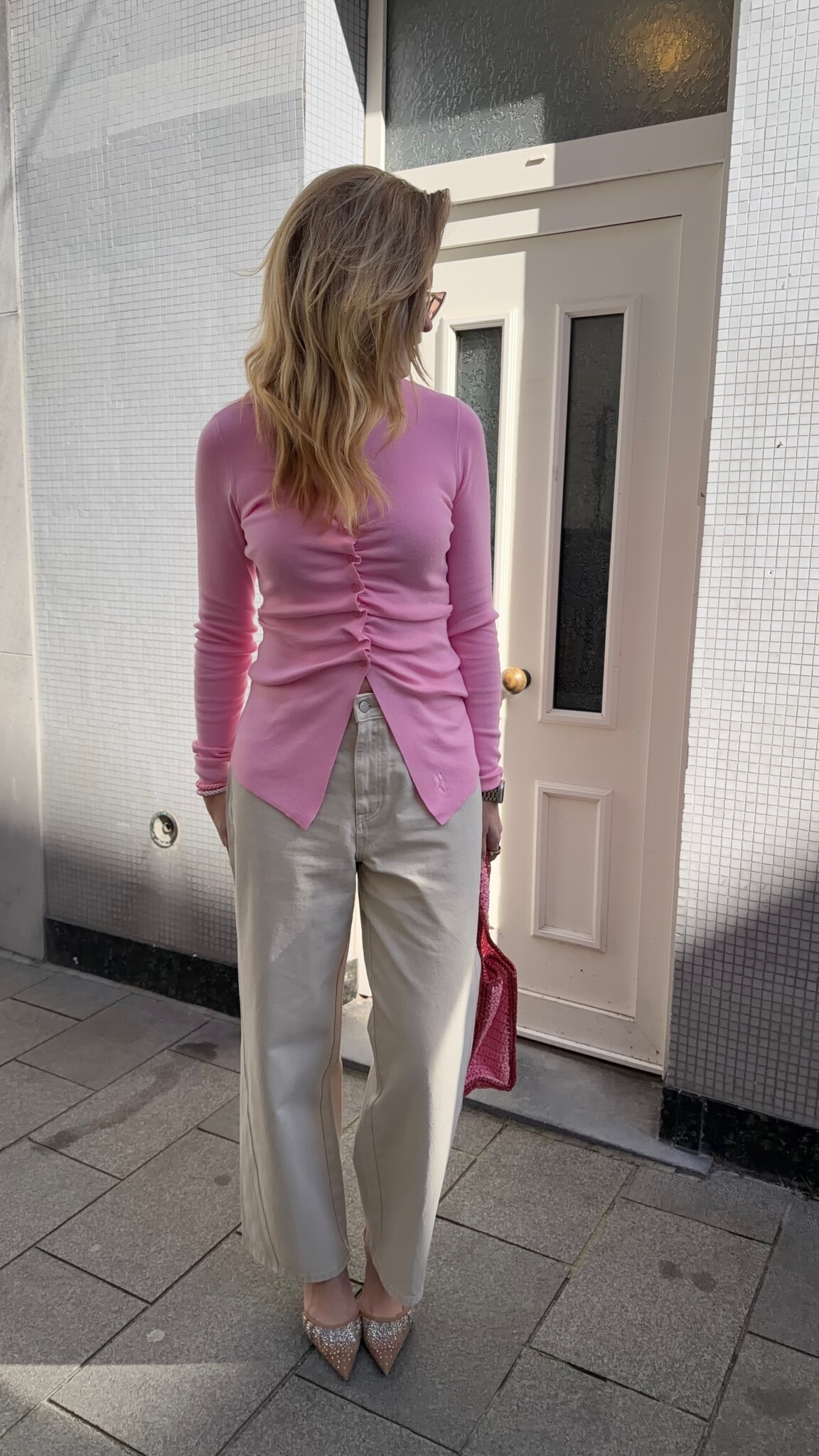 Zacht roze, vrouwelijk en net dat beetje extra: deze top heeft lange mouwen en een elegante knopenrij middenvoor. De getailleerde pasvorm flatteert, terwijl de open onderkant mooi meebeweegt met je heupen. Combineer met een jeans of een chique pantalon.