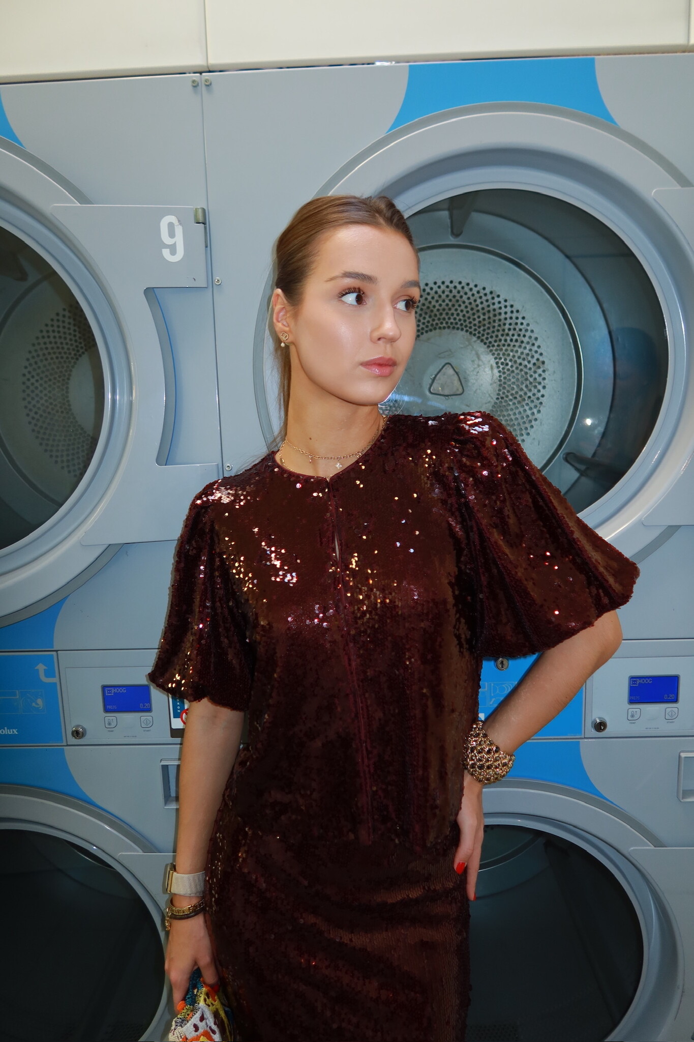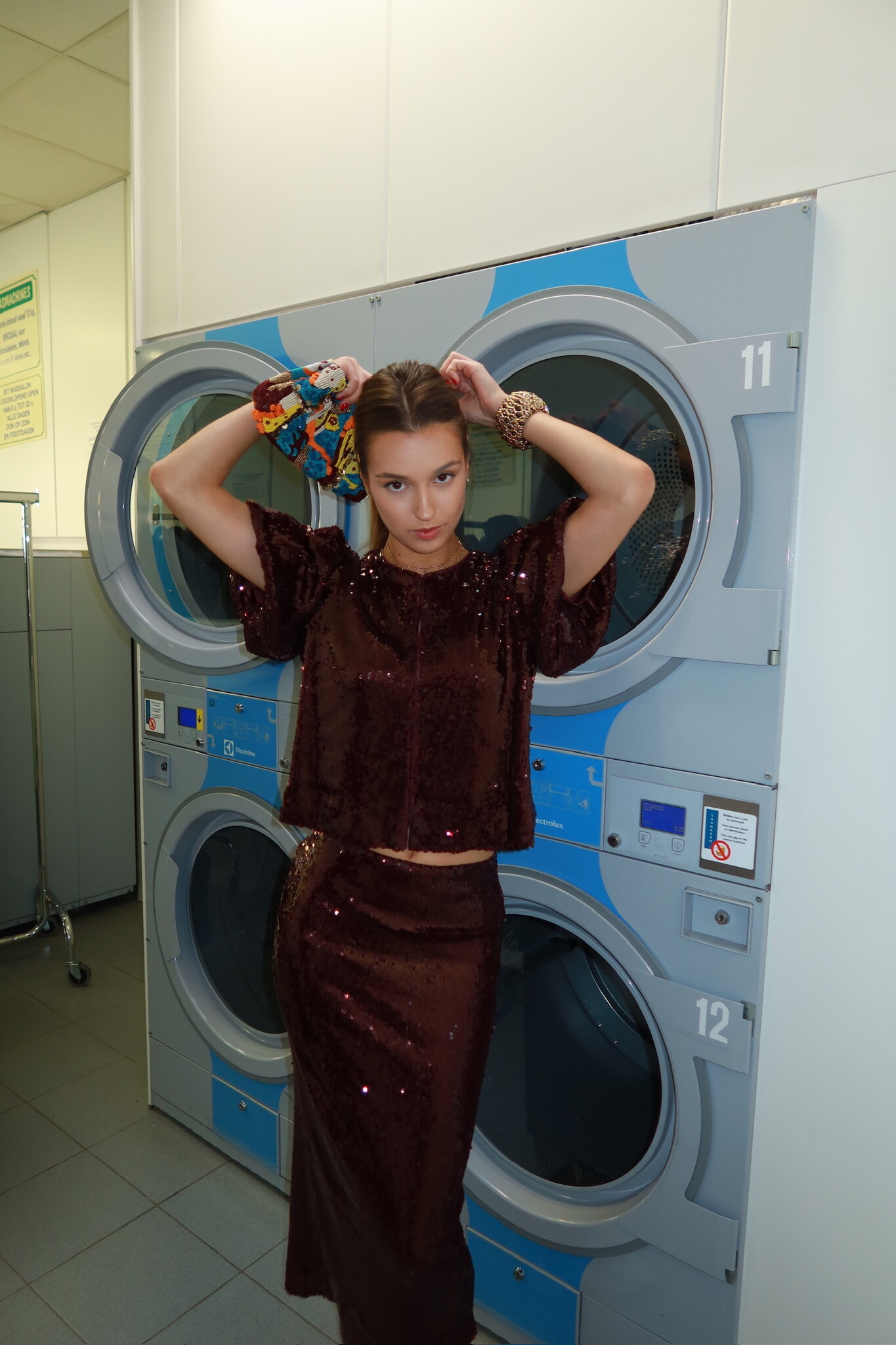 YASROYALINA SEQUIN ANKLE SKIRT PORT ROYAL